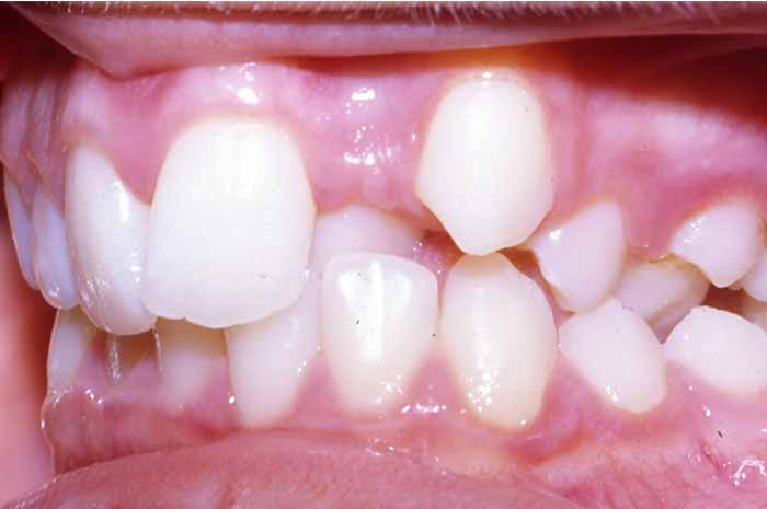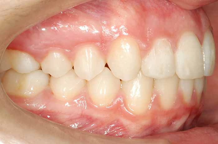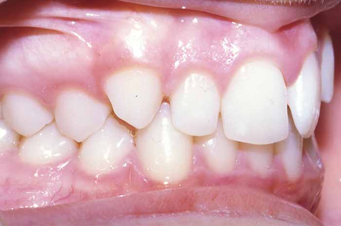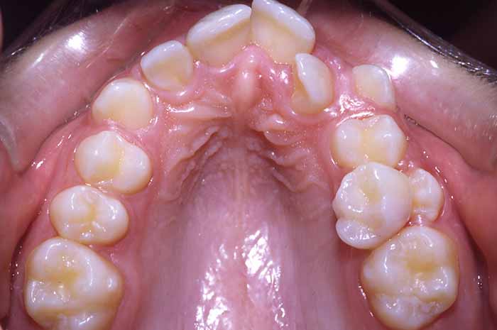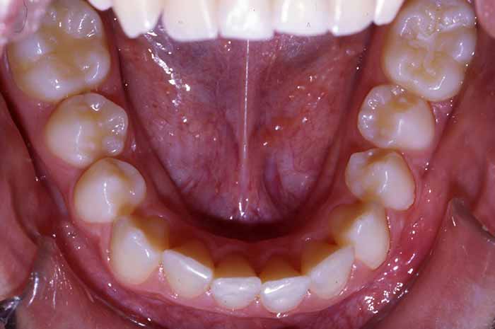 Uno o varios incisivos superiores se situan por detrás de los inferiores, pudiendo alterar el correcto cierre de la boca.